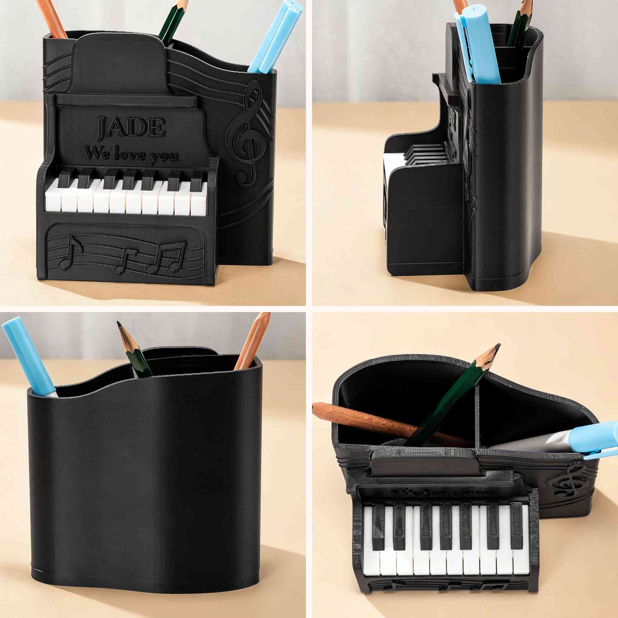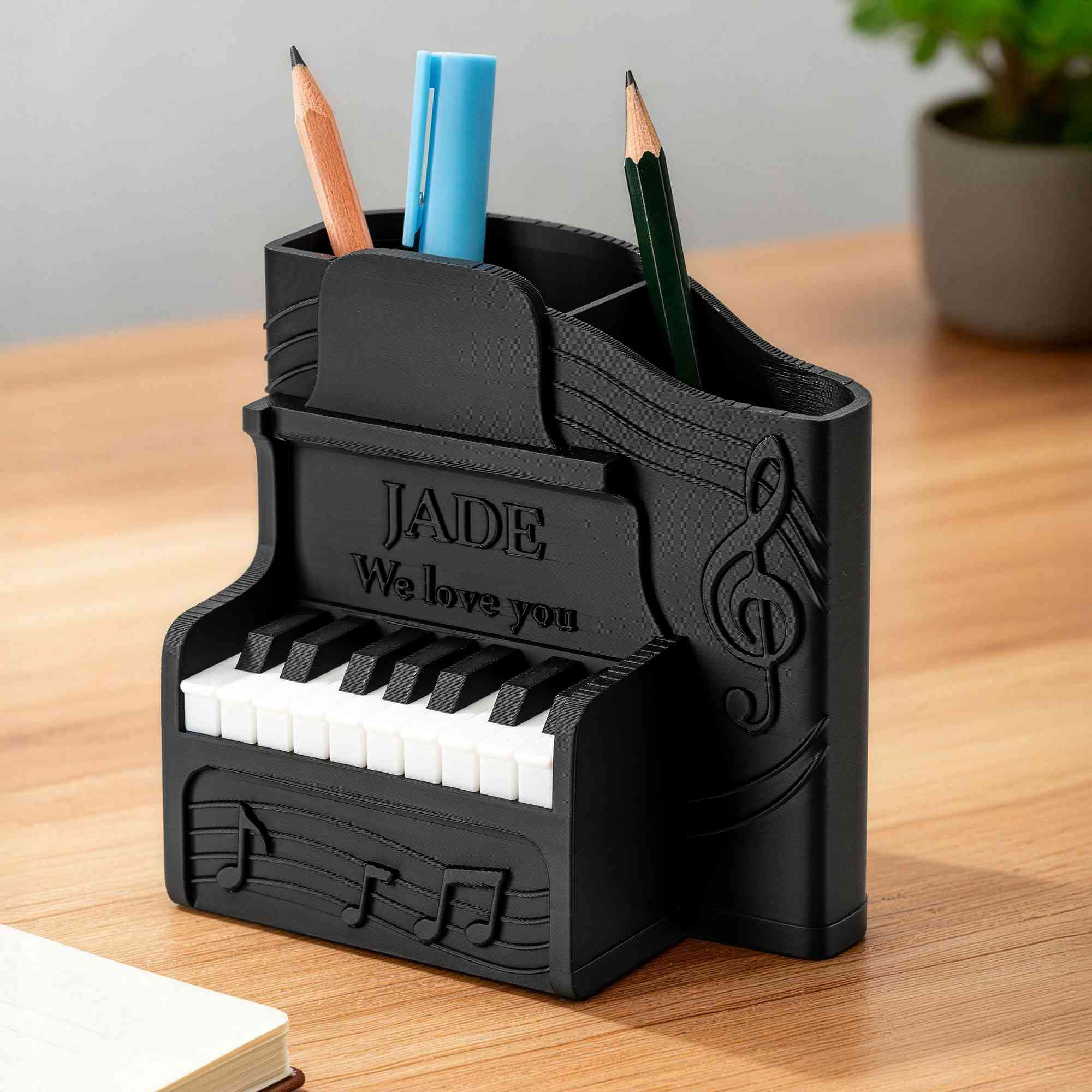 Personalized 3D Printed Piano Pen Holder with Name and Text |