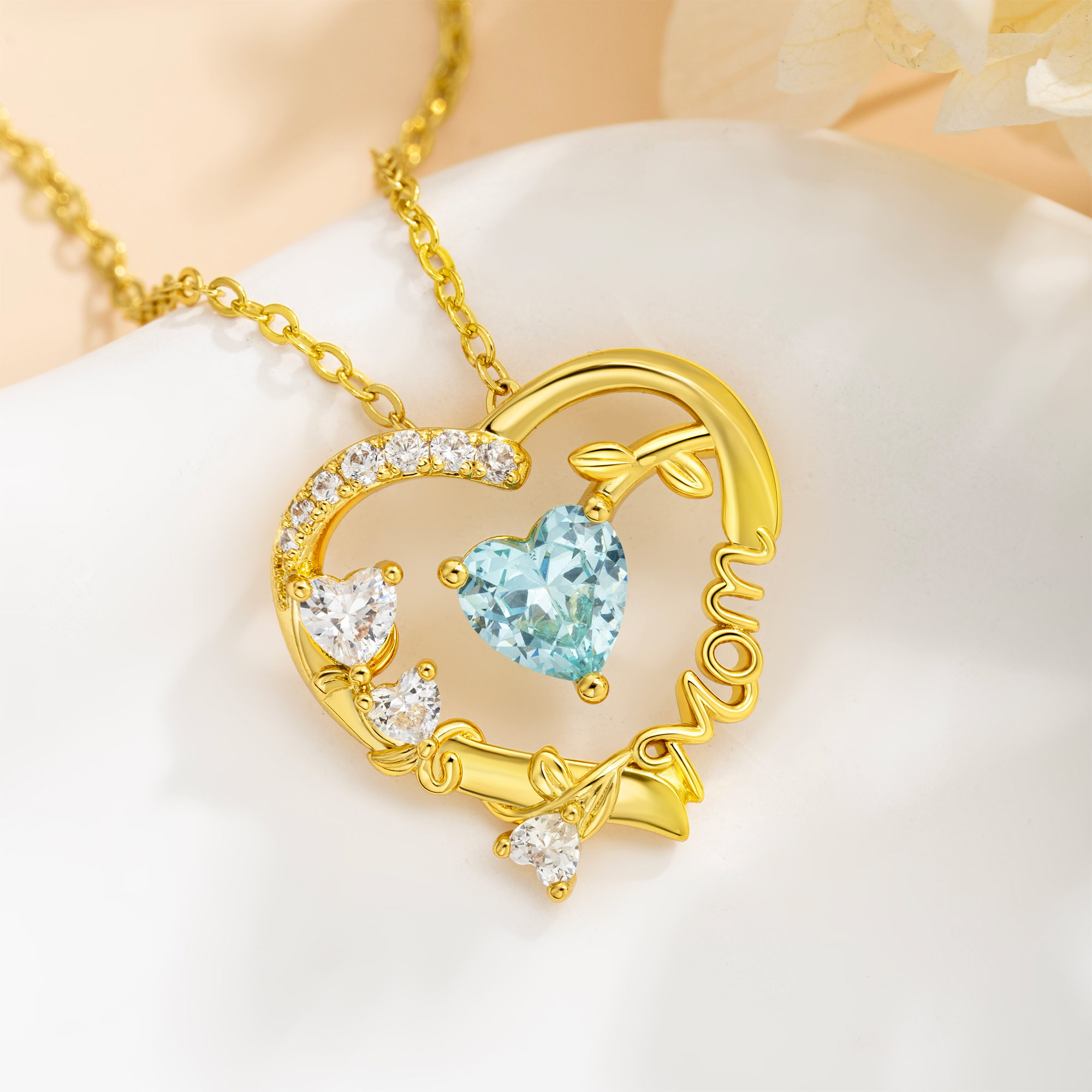Personalized Mom’s Rose Heart Necklace with Birthstone |